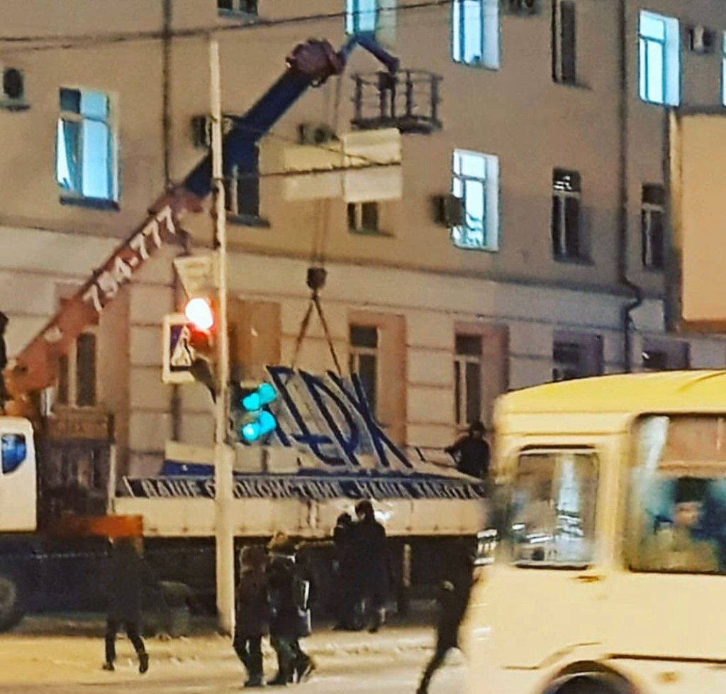 В столице республики на доме №13 по улице Кирова демонтировали рекламную конструкцию страховой компании «Стерх» в виде объемных световых букв.
