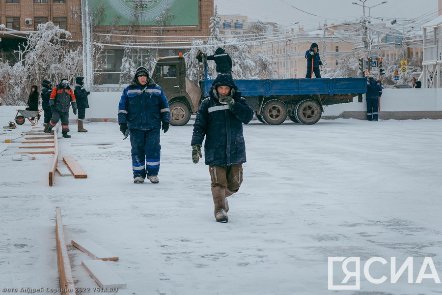 На площади Ленина в Якутске уже традиционно устанавливают каток, передает ЯСИА.