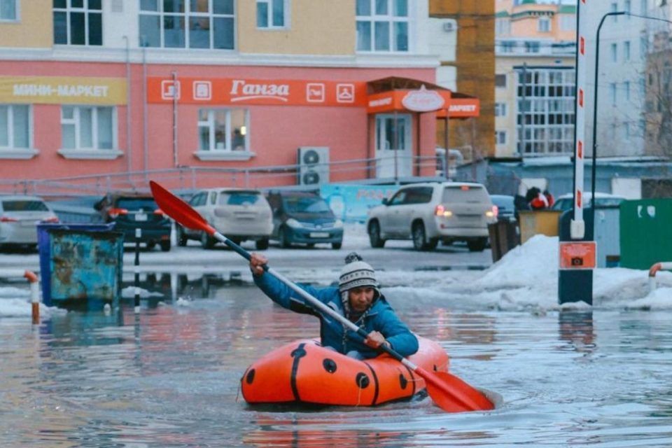 С приходом тёплой погоды улицы Якутска затопило талыми водами. Горожане жалуются на невозможность пройти и объехать образовавшиеся лужи. Житель столицы не растерялся и решил пробираться по дворам города на резиновой лодке.