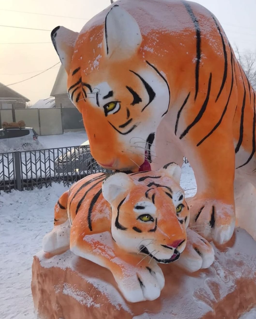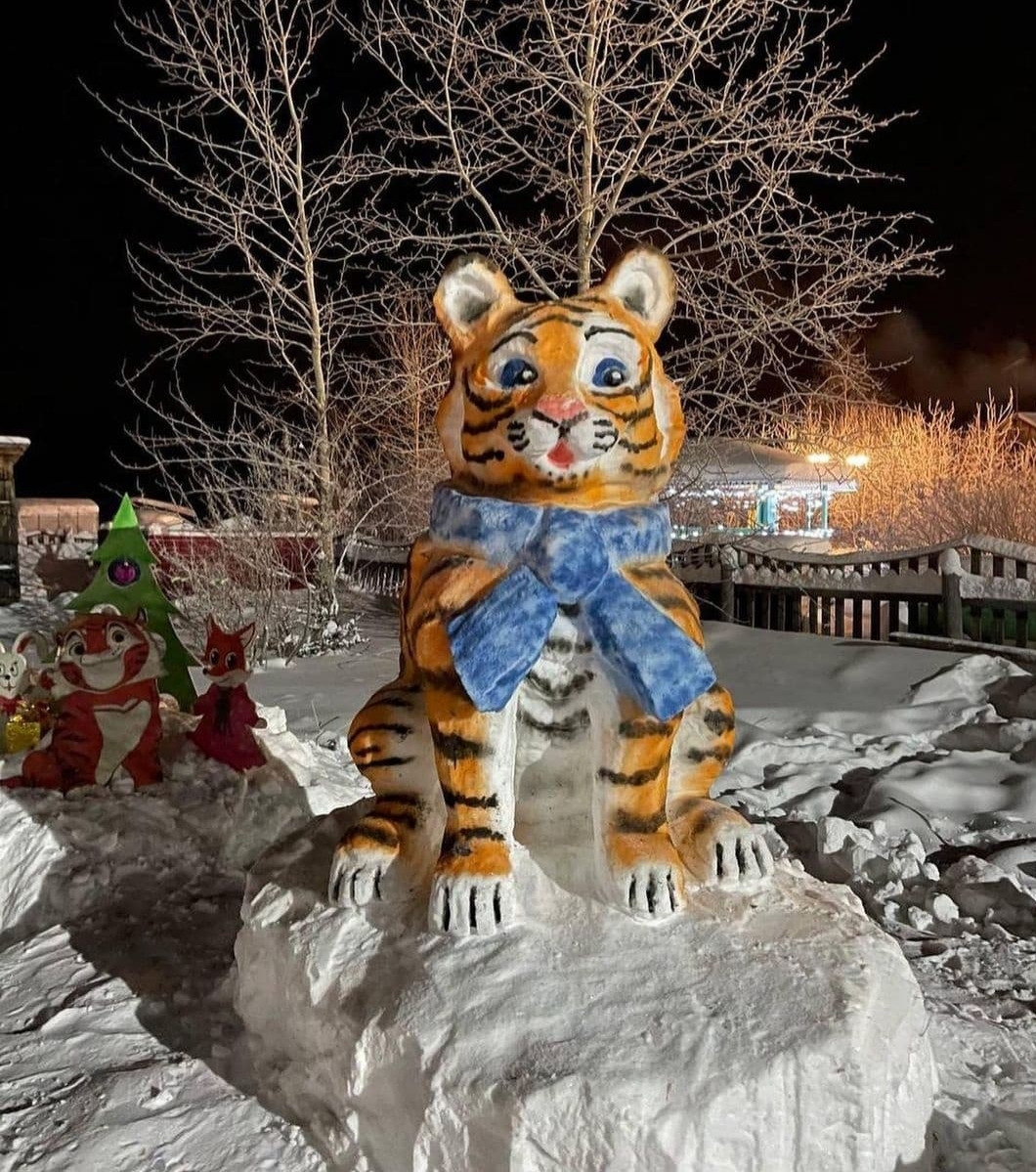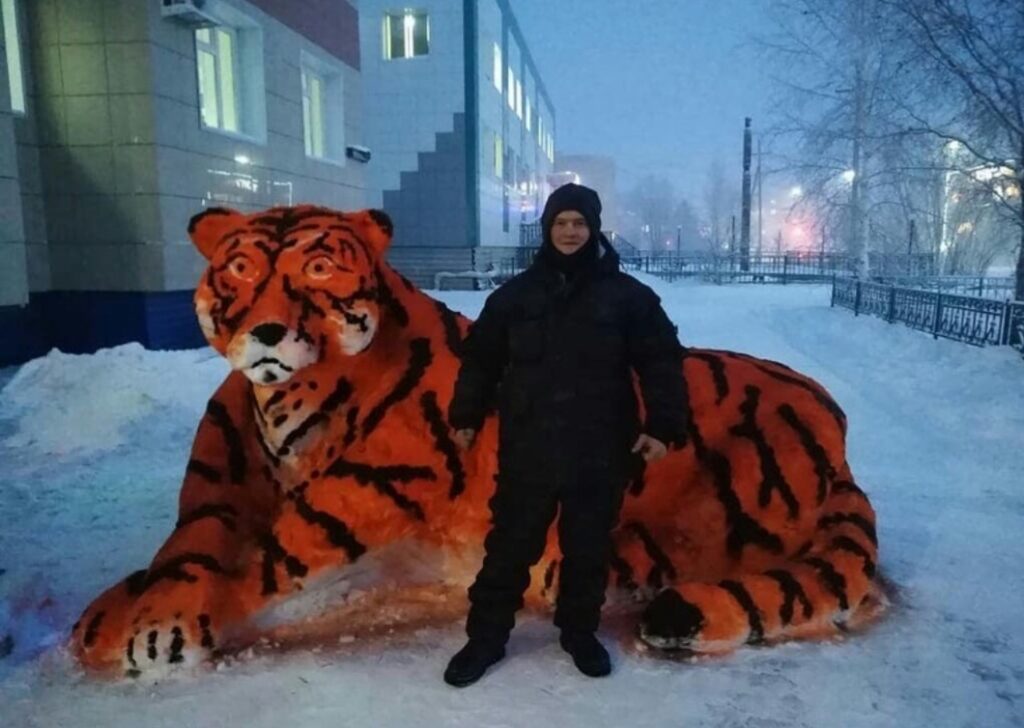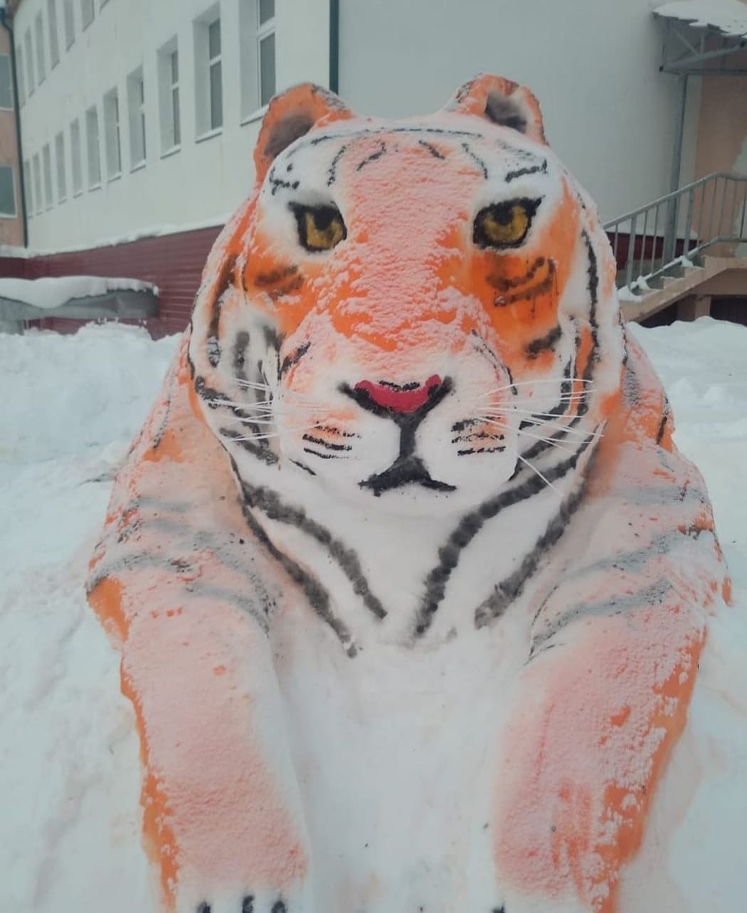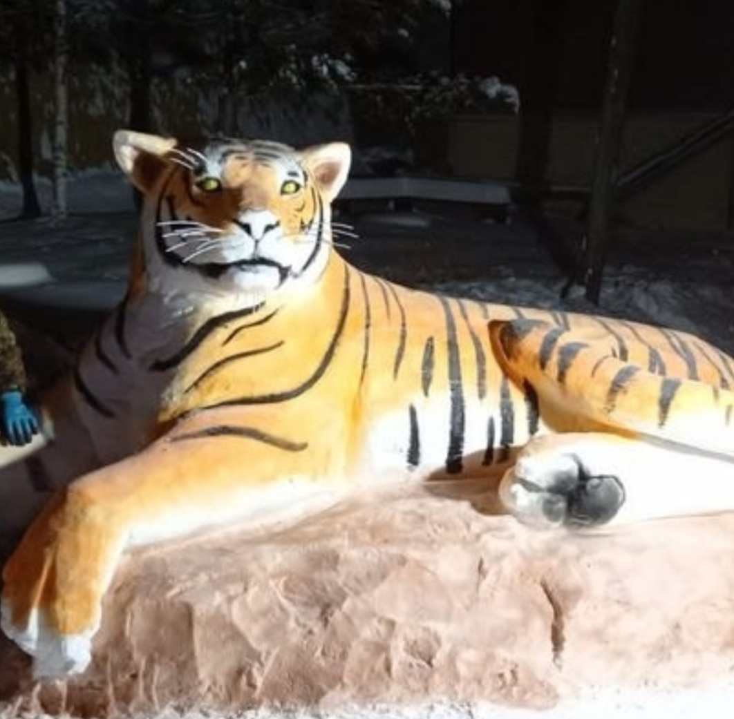 В преддверии Нового года во дворе администрации города Покровска Хангаласского улуса появился новый обитатель – пПокровский тигр, как его называют сами жители. Изваял огромную фигуру из снега работник администрации Сергей Иванов.