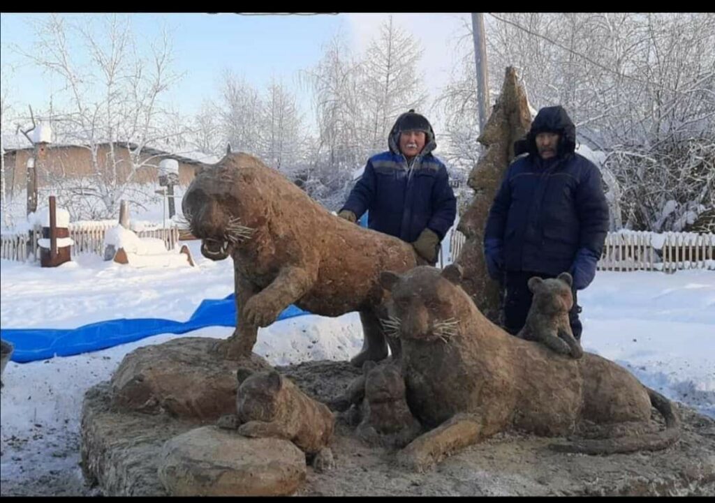 И завершает нашу подборку работа известного не только в республике, но и за ее пределами мастера из Таттинского улуса Михаила Боппосова. В этом году он традиционно презентовал очередную скульптуру из навоза в виде семейства тигров.