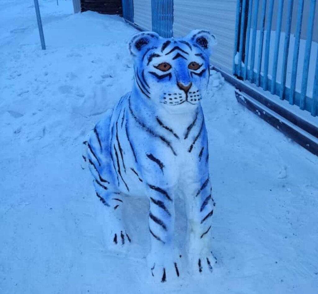 Необычного и соответствующего 2022 году, согласно китайскому календарю, голубого тигра создали в селе Малыкай Нюрбинского. Мастер – Владимир Иванов.