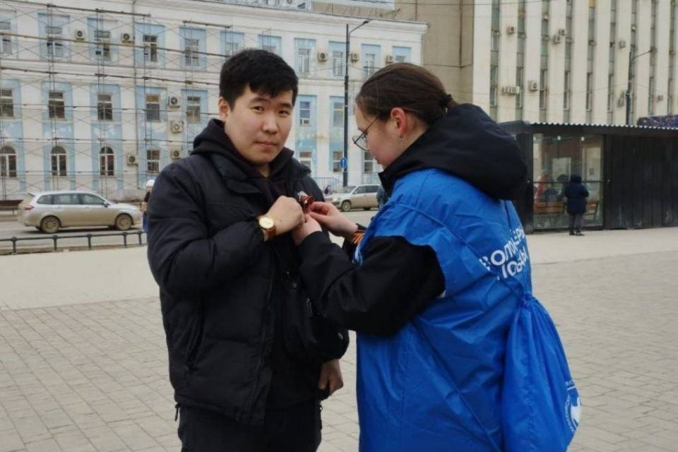 По всей Якутии проходит акция «Георгиевская ленточка». В Якутске один из главных символов Дня Победы раздают на всех главных площадях города. Всего по республике уже роздано более 20 тысяч лент. Об этом ЯСИА сообщил заместитель регионального координатора ЯРО «Волонтеры Победы» Тимур Егоров.