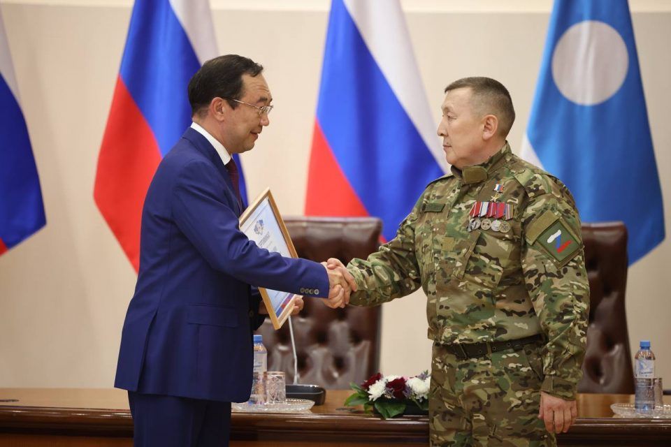 «23 мая в Екатерининском зале Кремля верховный главнокомандующий, президент Российской Федерации Владимир Путин вручил Золотую Звезду Героя России якутянину, командиру якутского добровольческого отряда «Боотур-1» добровольческого батальона «Барс-2» Александру Колесову. Сегодня мы выражаем огромную гордость и уважение герою от имени всех жителей республики, – сказал Айсен Николаев. — Он первым из наших бойцов, участников специальной военной операции, удостоен за свой подвиг самого высокого звания нашей страны, звания Героя России. Во время ежедневных боев в сентябре прошлого года он не только выполнил боевое задание, но и спас десятки бойцов, проявив настоящее мужество и воинскую доблесть».