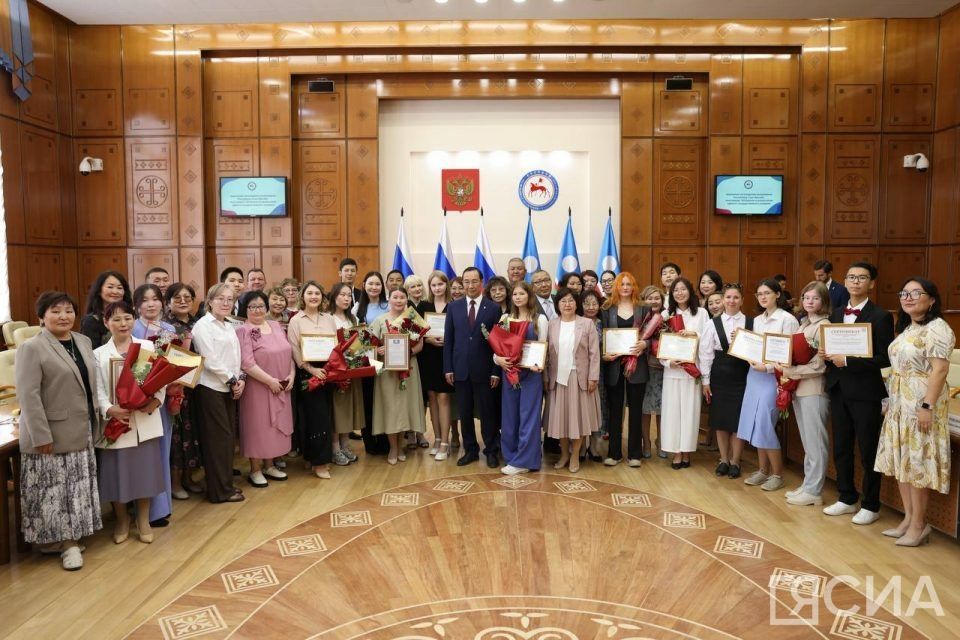 В Якутии состоялась торжественная церемония вручения сертификатов на 100 тысяч рублей выпускникам 2023 года, сдавшим единый государственный экзамен на высший балл. Награду за успехи в учебе вручил глава Якутии Айсен Николаев.