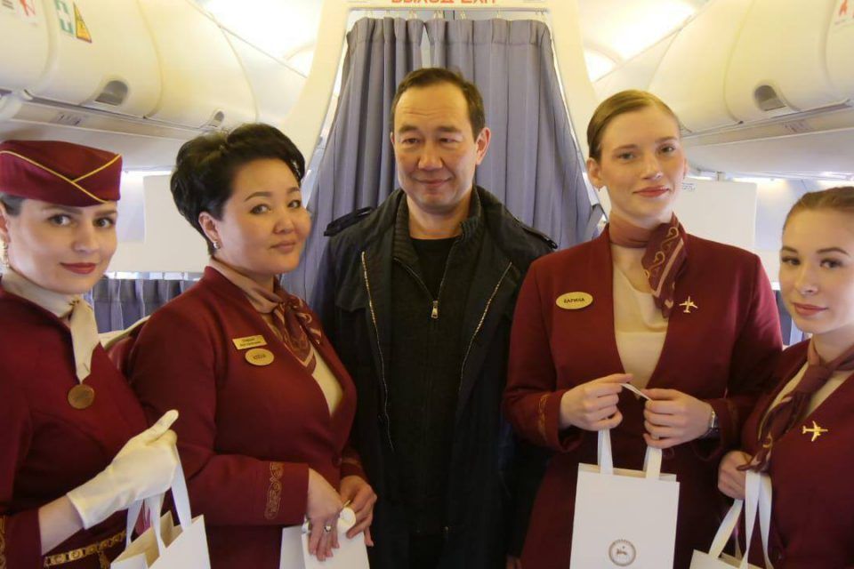 Сегодня, 6 мая, исполняется 80 лет Службе бортпроводников Якутии. Глава республики Айсен Николаев поздравил работников авиации с праздником на борту самолета.