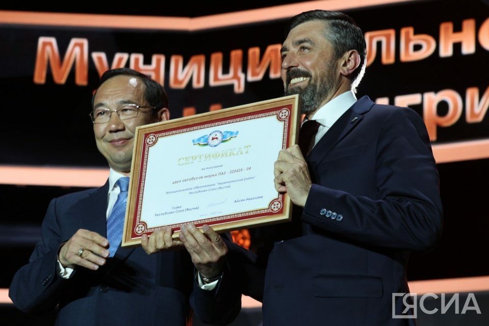В пятницу в Нерюнгри на центральной площади города отметили День шахтера. С праздником нерюнгринцев поздравил глава Якутии. Айсен Николаев вручил муниципальному району сертификат на получение двух автобусов для межпоселковых пассажирских маршрутов.