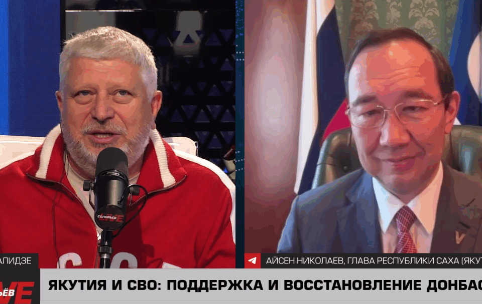 Глава Якутии по просьбе ведущего программы познакомил слушателей и зрителей канала СоловьевLive с планами якутских кинематографистов и анонсировал создание при поддержке главы ДНР киноленты о Герое России Андрее Григорьеве с позывным «Тута».