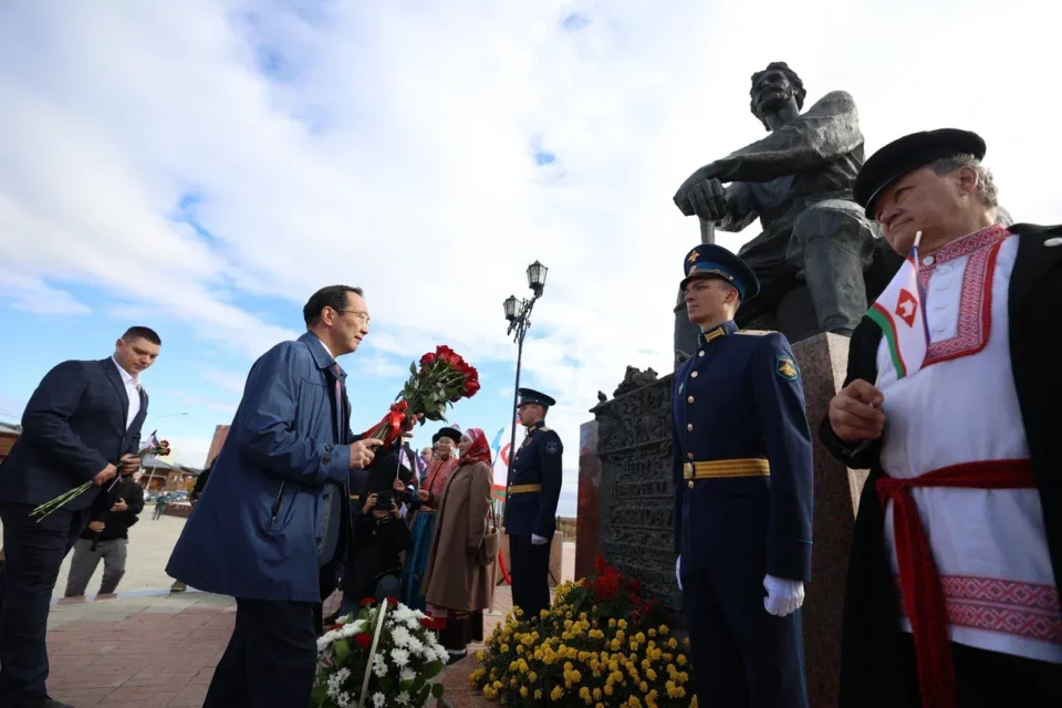 Глава Якутии Айсен Николаев возложил цветы к монументу вместе с мэром Якутска Евгением Григорьевым, председателем Якутской городской Думы Альбертом Семёновым, Героями Российской Федерации Николаем Соболевым и Филиппом Евсеевым. В церемонии также приняли участие члены правительства республики, депутаты, ветераны, представители молодёжи и горожане.