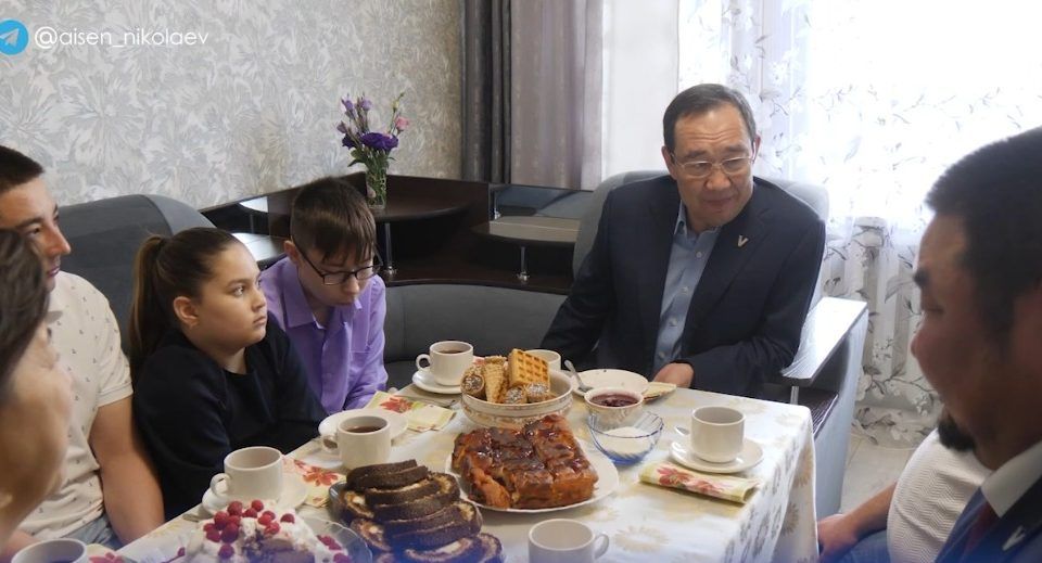 Глава Якутии Айсен Николаев встретился с семьей военнослужащего в Олекминске. В ходе боев с противником боец получил ранение, сейчас он восстанавливается.