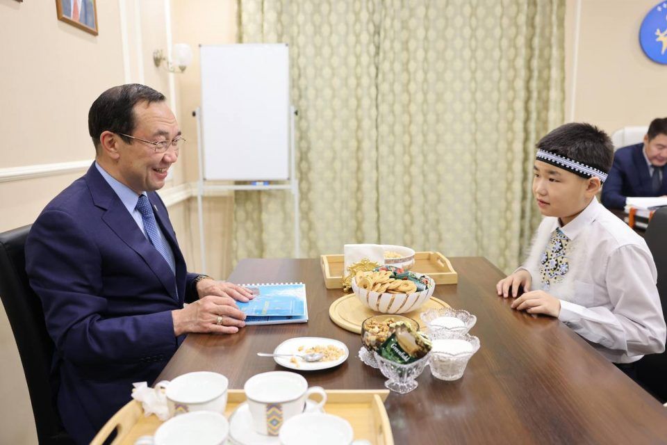 Глава Якутии Айсен Николаев во время рабочей командировки в Анабарский национальный долгано-эвенкийский район встретился с учеником Саскылахской средней школы Эрчимом Лазаревым. Мальчик пригласил руководителя республики в гости, позвонив во время прямой линии в сентябре. Об этом сообщает пресс-служба главы и правительства региона.