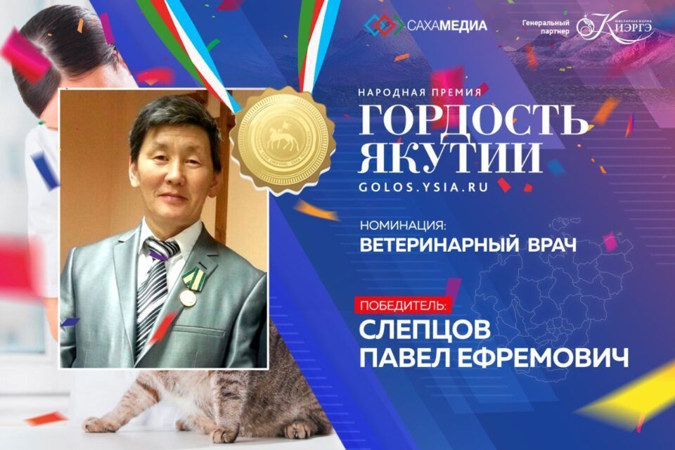 Сегодня завершился финальный этап номинации «Ветеринарный врач» народной премии «Гордость Якутии». По итогам голосования победителем стал заведующий Табагинской ветеринарной лечебницы Мегино-Кангаласского улуса Павел Слепцов. За него отдали 10 879 голосов.