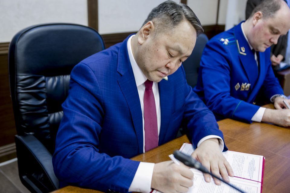 Председатель Якутской городской Думы Альберт Семенов и прокурор города Якутска Виктор Умеренко подписали соглашение о взаимодействии и сотрудничестве.