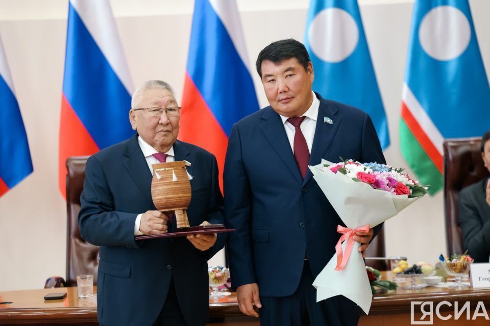 В честь 70-летия экс-главе Якутии, ныне сенатору РФ от региона Егору Борисову вручили государственную премию имени Максима Аммосова в области государственного строительства. Поздравить с юбилеем Егора Борисова в зале республики собрались его родные, а также руководство правительства региона, народные депутаты и министры.