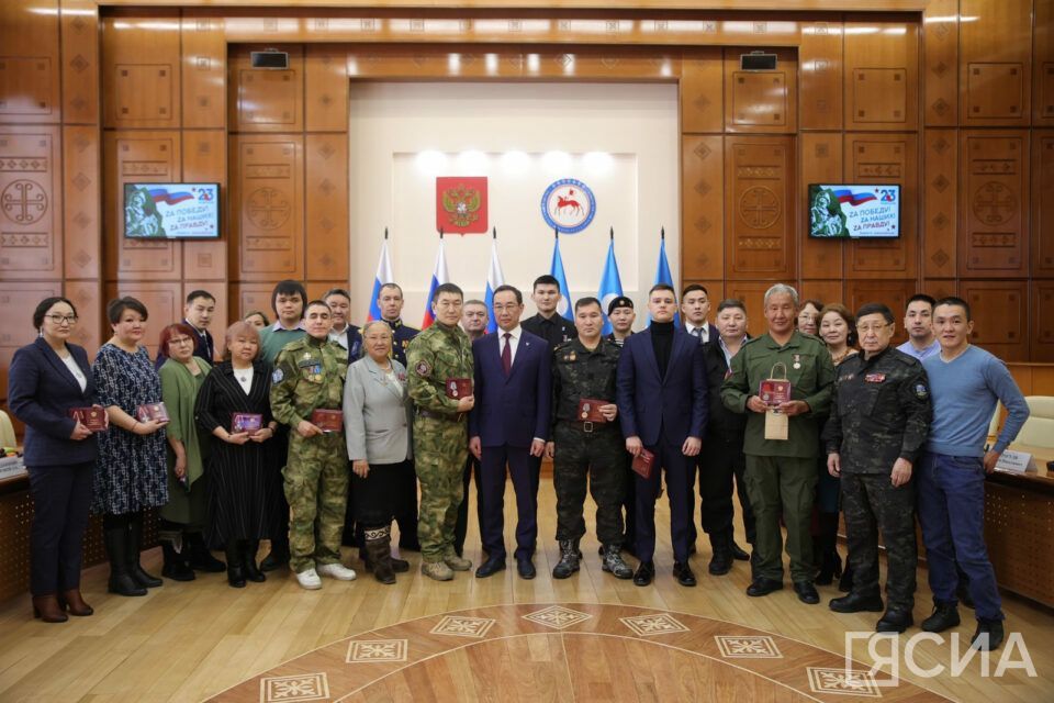 В День защитника Отечества, 23 февраля, глава Якутии Айсен Николаев вручил государственные награды якутянам−участникам специальной военной операции на Украине.