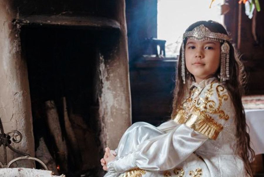 «Сочетание белого и голубого цветов в ее наряде олицетворяют бескрайние снежные просторы, небо – символ чистоты, величия, вечности. На спине – северное сияние, удивительное природное явление, и река Лена, гордо несущая чистые воды к Северному Ледовитому океану. Костюм венчает герб Якутска: орёл в серебряном поле, который считается прародителем и покровителем народа саха. Соболь и мех из песца указывают на то, как богата якутская земля пушниной. Орнамент выступает в качестве сильного оберега. Сверкающие камни символизируют бриллианты Якутии. Подсветка светодиодная, для создания эффекта северного сияния и блеска драгоценных алмазов и снега», – рассказала корреспонденту ЯСИА мама девочки Вероника Томтосова.