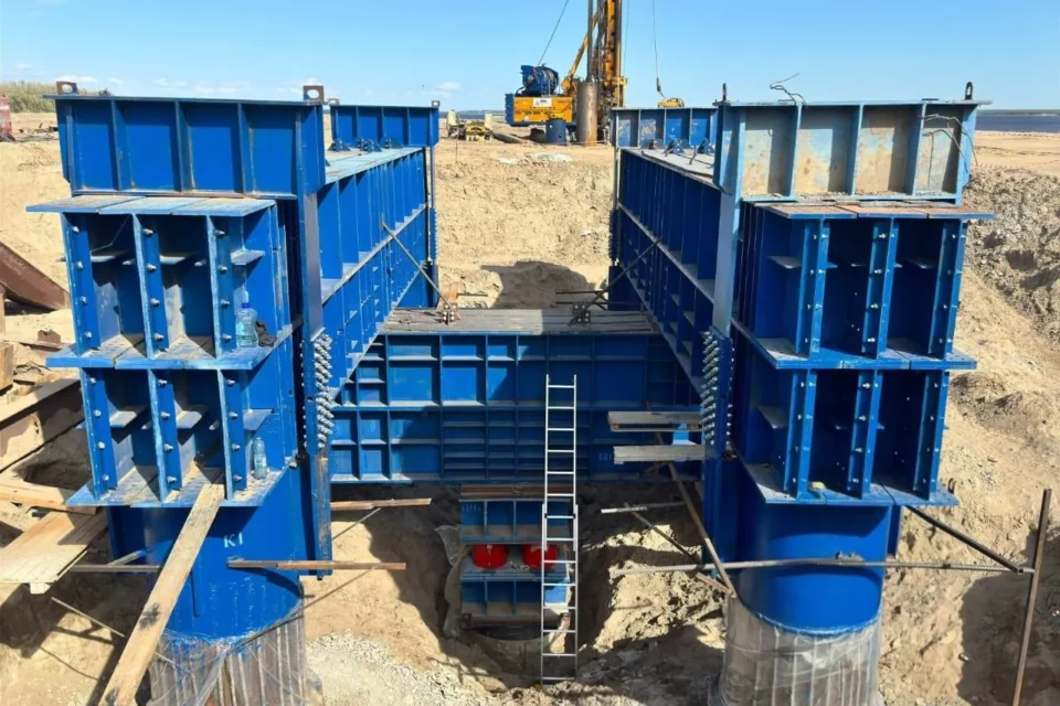 Для русловой опоры собираются армокаркасы свай. Одновременно ведётся укрупнение шпунта для строительства будущего временного причала, который будет задействован для швартовки грузовых барж. Строительство ведётся в соответствии с графиком и с учётом климатических особенностей региона.