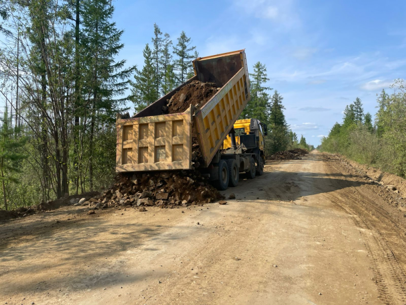 На трассе работает семь единиц техники. По словам директора МУП «Чароит» Антона Жукова, выступающего подрядчиком, в данное время идет отсыпка дорожного полотна.