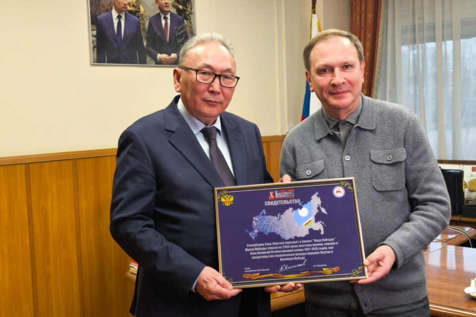 Имена 2263 воинов из Якутии включат во всероссийский историко-социальный проект Музея Победы — «Лица Победы». Список генеральному директору Музея Победы Александру Школьнику передал постоянный представитель Якутии при президенте РФ — первый заместитель председателя правительства республики Андрей Федотов по поручению главы Якутии Айсена Николаева. Об этом сообщает пресс-служба главы и правительства региона.