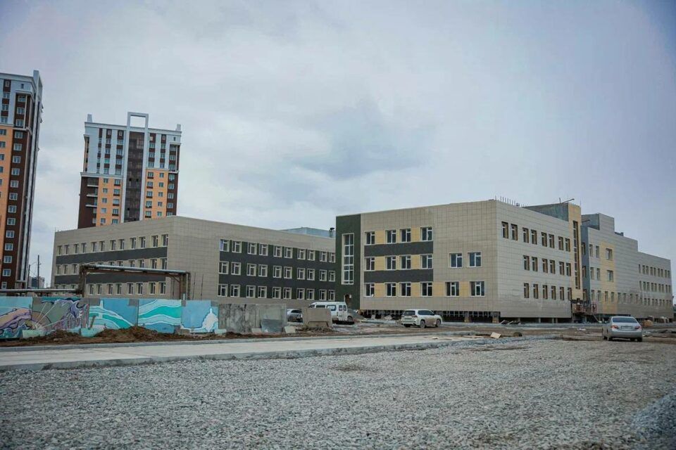 Школа, в которой будут обучаться 990 учеников, строится по нацпроекту «Образование». Это трёхэтажное здание общей площадью 13 070,876 кв. метров.