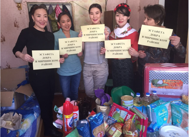 А, например, медиакомпания «Алмазный край» собирала заявки от нуждающихся людей и желающих оказать помощь. В числе последних были благотворительный фонд «Выбор», объединение молодых специалистов АЛРОСА, Мирнинское авиапредприятие, общественная организация «Содействие», волонтеры Мирнинского регионального технического колледжа, прихожане Свято-Троицкого храма, предприниматели Мирного, депутаты городского и районного Советов.