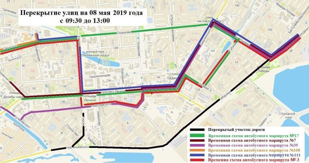 В целях обеспечения безопасности дорожного движения в связи с проведением праздничных мероприятий, посвященных 74-й годовщине Победы в Великой Отечественной войне 1941-1945 годов, 8 мая в Якутске с 9.30 до 13.00 будет перекрыт ряд улиц: