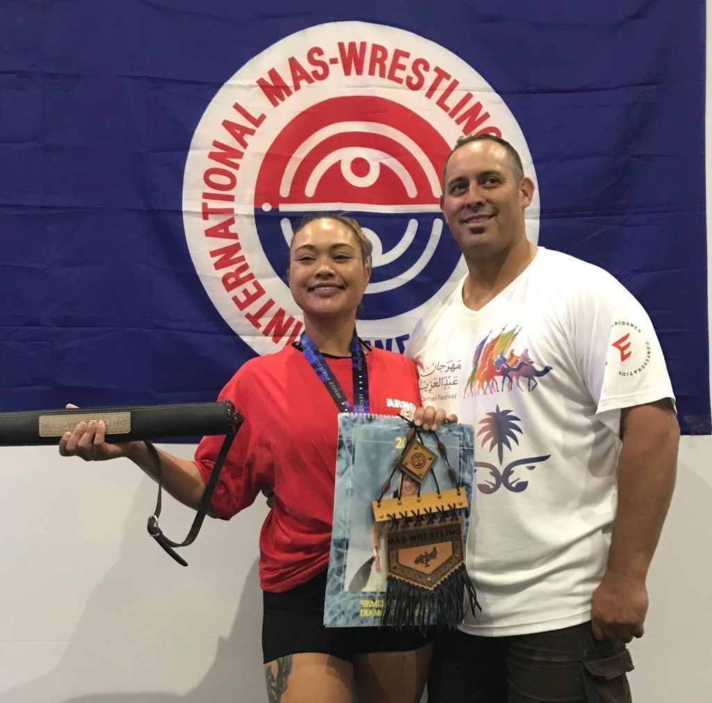 Вчерашняя победительница в весовой категории до 85 кг Шарлин Пини присоединилась к интервью: «Мне 37 лет, самоанка по происхождению, родилась и выросла в Южном Окленде, Новая Зеландия. Работю в Министерстве юстиции Новой Зеландии. Я в настоящее время выступаю в Strongwoman. Узнала о мас-рестлинге через друзей. Это отличный спорт и хорошо, что он теперь есть в Новой Зеландии. Если вы когда-нибудь приедете в Новую Зеландию, вы увидите, что это удивительная страна, вы встретите замечательных людей и прекрасные места для путешествия. Давайте вместе пробовать мас-рестлинг».
