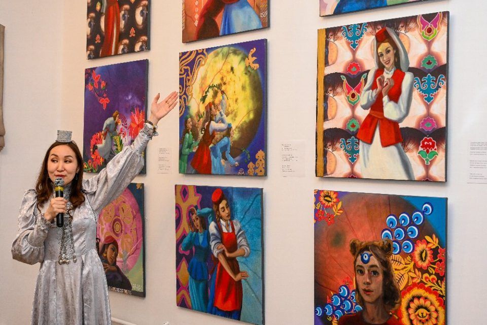 О главной миссии проекта гостям рассказала сама Мира Аргунова — автор выставки, лауреат многих художественных премий, дипломант международных и российских конкурсов живописи и графики, член Союза художников России. Она сыграла зрителям национальную якутскую мелодию на варгане, а затем пояснила, что замысел её выставки заключается в единстве.