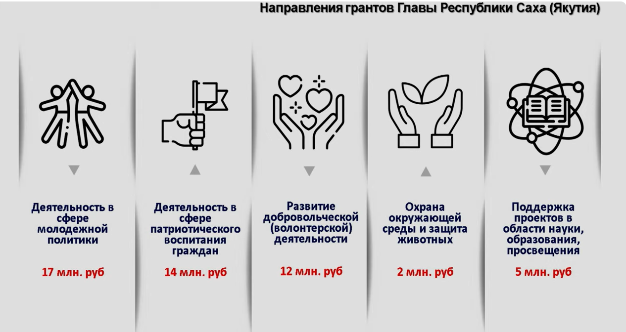 «Наши общественники очень радуют. В прошлом году по количеству поступивших заявок мы установили абсолютный рекорд по Дальнему Востоку. Качество проектов было очень высоким. Если мы начинали наш путь с 50 баллов от 100 возможных, сейчас дошли до 80-85 баллов, это очень большой ценз, даже если смотреть на федеральном уровне. Сейчас мы нацеливаем наших общественников, чтобы они участвовали в федеральных конкурсах и привлекали федеральные деньги в нашу республику.