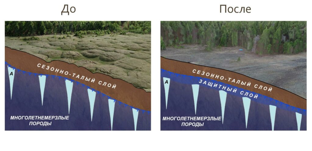 «Достоверность методики теоретически уже оценена, в результате проведенного численного эксперимента установлены лучшие и оптимальные условия, при которых возможно воссоздание защитного слоя. Получено, что явное восстановление защитного слоя будет наблюдаться при максимальном влагонасыщении грунтов и при снегоочистке в зимний период, при котором возникает максимально льдонасыщенный мощный, до одного метра, защитный слой», — сообщил он.