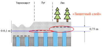 Защитный слой – в мерзлотоведении под этим термином понимаются мерзлые льдонасыщенные грунты, залегающие непосредственно над подземными льдами, но под сезонно-талым слоем.