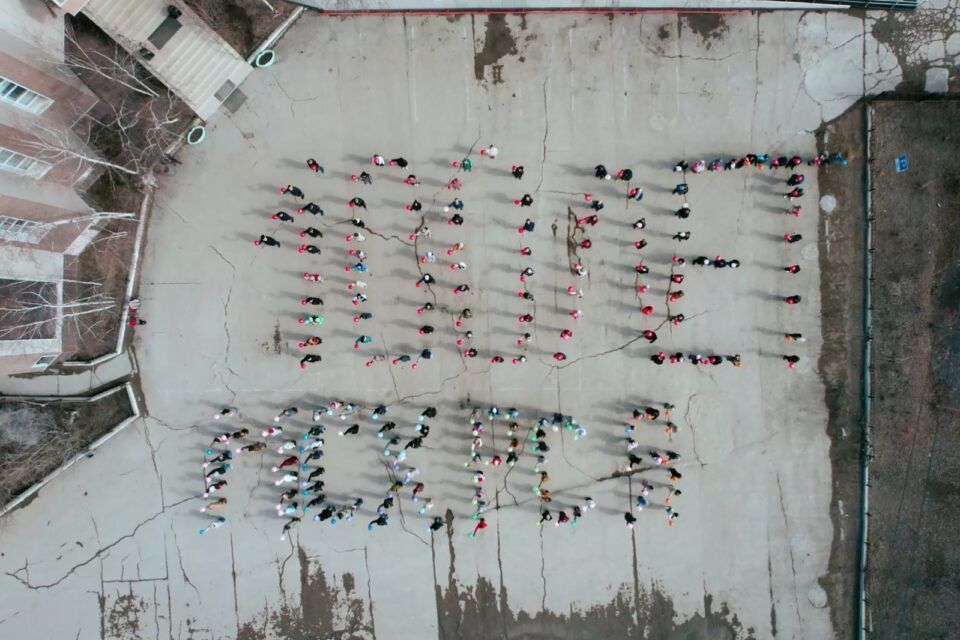 Участники флешмоба выстроились возле здания министерства сельского хозяйства в виде надписи «100 лет МСХ РС(Я)».