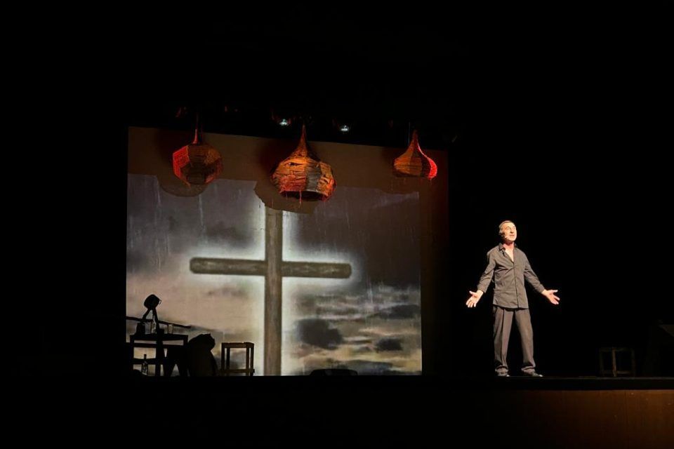 «Постановка рассказывает о судьбе человека, погрузившегося на дно жизни, но сумевшего подняться и вновь заслужить уважение людей. «Русский крест» — это история о жизни русской деревни и многих других местах, погибающих в безверии, а затем возрождающихся из руин благодаря обыкновенным жителям, стойким и молящимся, терпеливым и родным. Главной идеей спектакля является единение народа, что в сегодняшней ситуации более чем актуально», — говорят авторы спектакля.