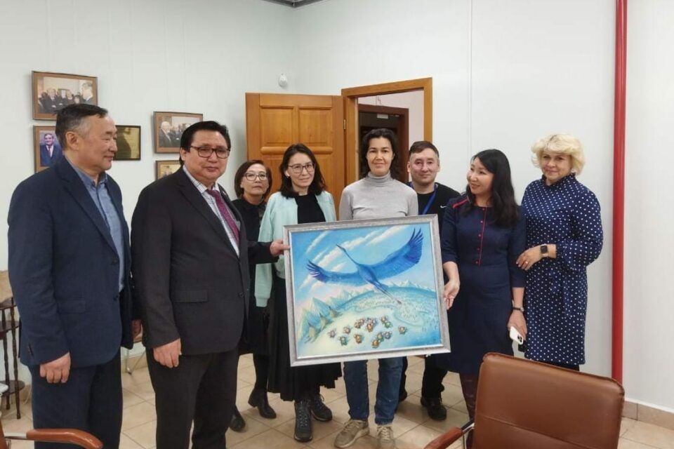 Сенатор Александр Акимов передал в дар Национальному художественному музею картину «Синяя птица Якутска» московской художницы Виктории Просвирниной.