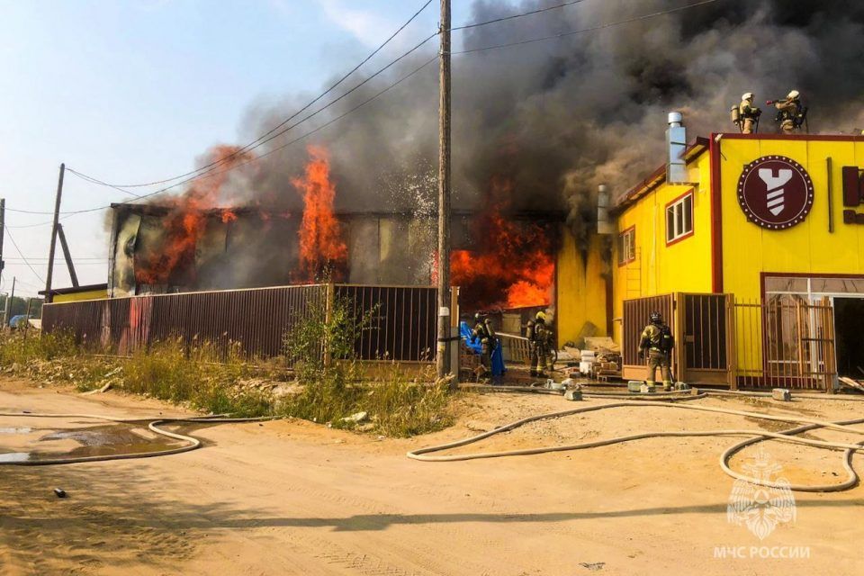 «В считанные минуты к месту вызова прибыли огнеборцы Якутского пожарно-спасательного гарнизона. На момент их прибытия горела кровля магазина и склада открытым огнем. Предварительная площадь пожара 380 кв. м», — сообщили в МЧС по Якутии.