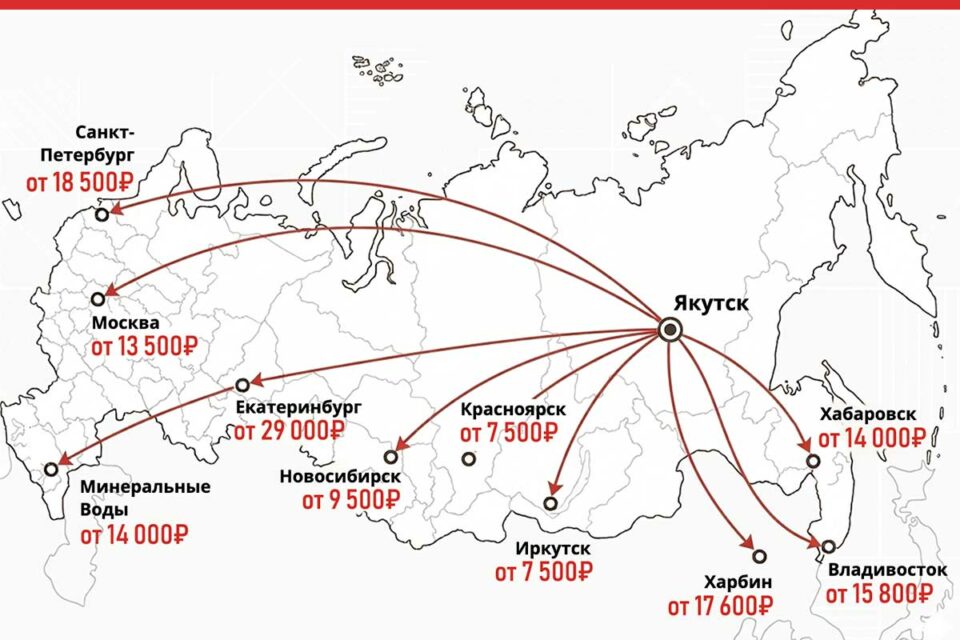 - Якутск – Санкт-Петербург – от 18 500 рублей.