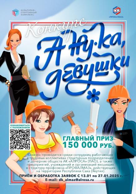 В конкурсе могут принять участие девушки, работающие в подразделениях Группы АЛРОСА и других предприятиях Мирнинского района, входящих в структуру профсоюза «Профалмаз». Главный приз победительнице –