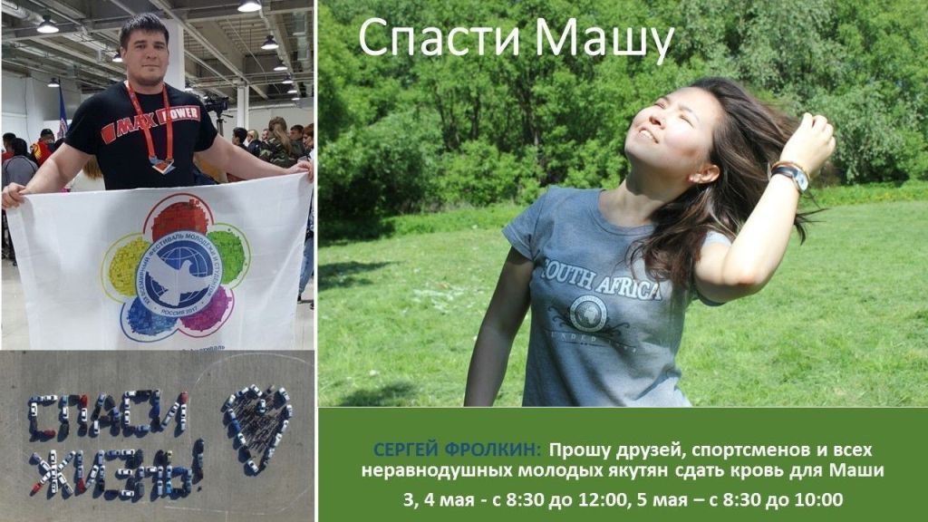 У Маши острый лимфобластный лейкоз (рак крови). Ей требуется срочная трансплантация костного мозга и подобрать ей донора можно только среди якутов или якутян смешанных кровей.