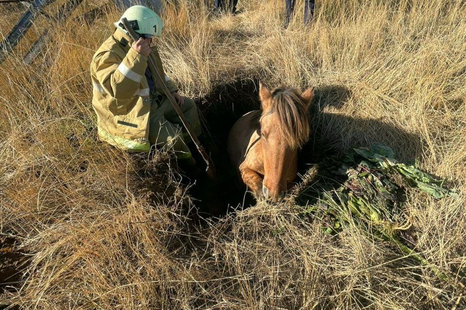 Пожарные поселка Нижний Бестях вытащили провалившуюся в яму лошадь. Выбраться самостоятельно она не смогла. Из ямы торчала только голова животного.
