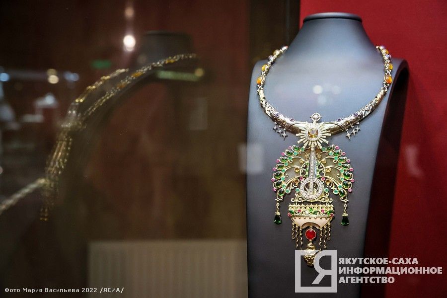 Экспозиция выставки «Лучшие ювелирные изделия Якутии 2022» расположена в зале эксклюзивных изделий Сокровищницы республики и будет работать до 3 ноября.