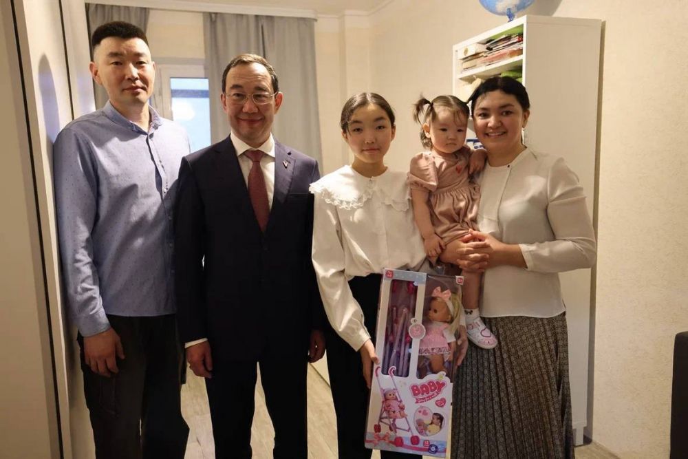 Айсен Николаев, работая на мирнинской площадке посетил семью Онуфриевых, где живет миллионный житель Якутии. Саине идет второй год и скоро она пойдет в детский сад. Семья живет в новом доме, придомовая территория которого требует серьезного благоустройства. ТСЖ дома приняло участие в конкурсе «Территория АЛРОСА». В результате будет реализован проект хорошей детской площадки. Работы должны завершить в 2025-м году.