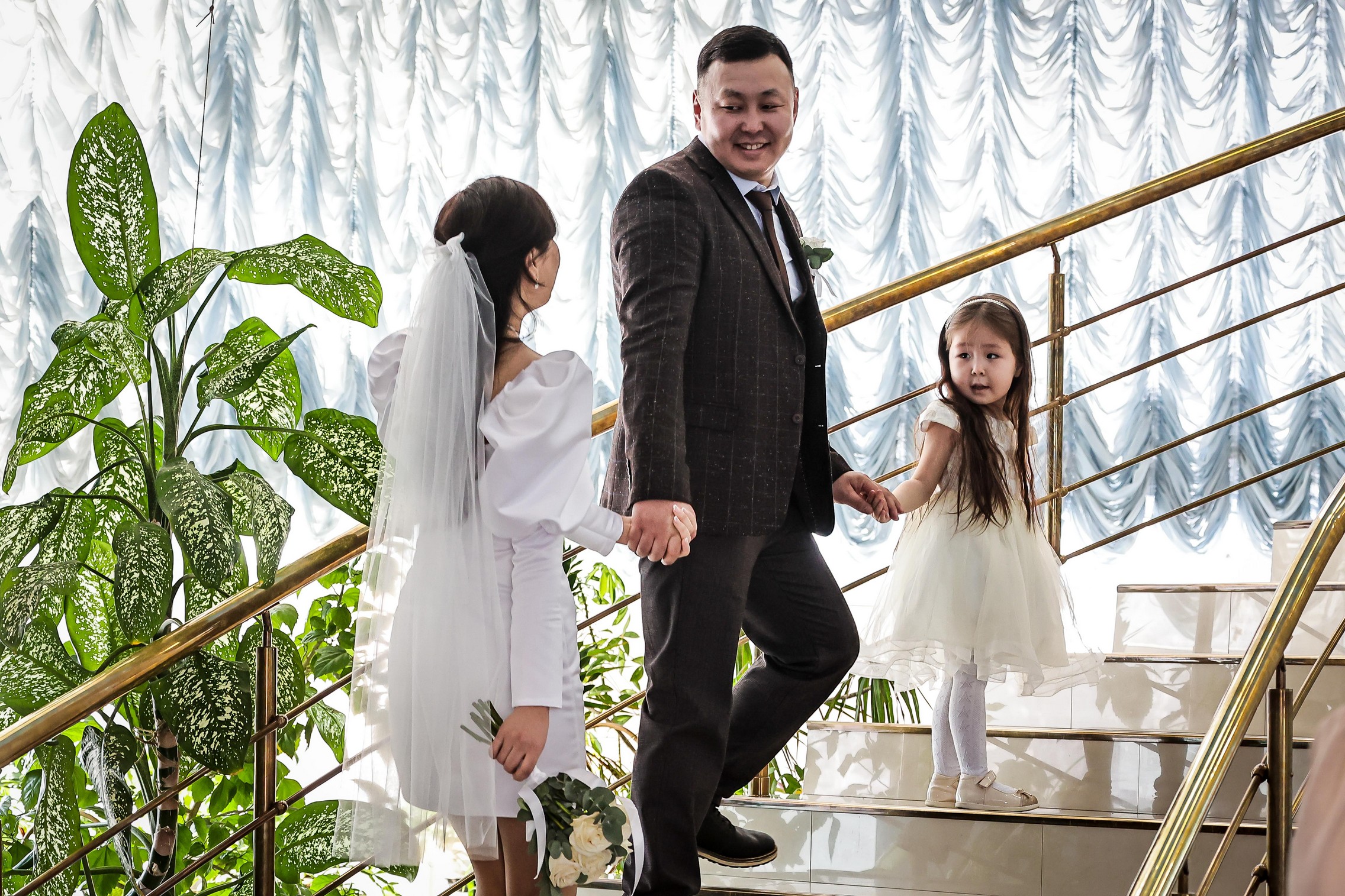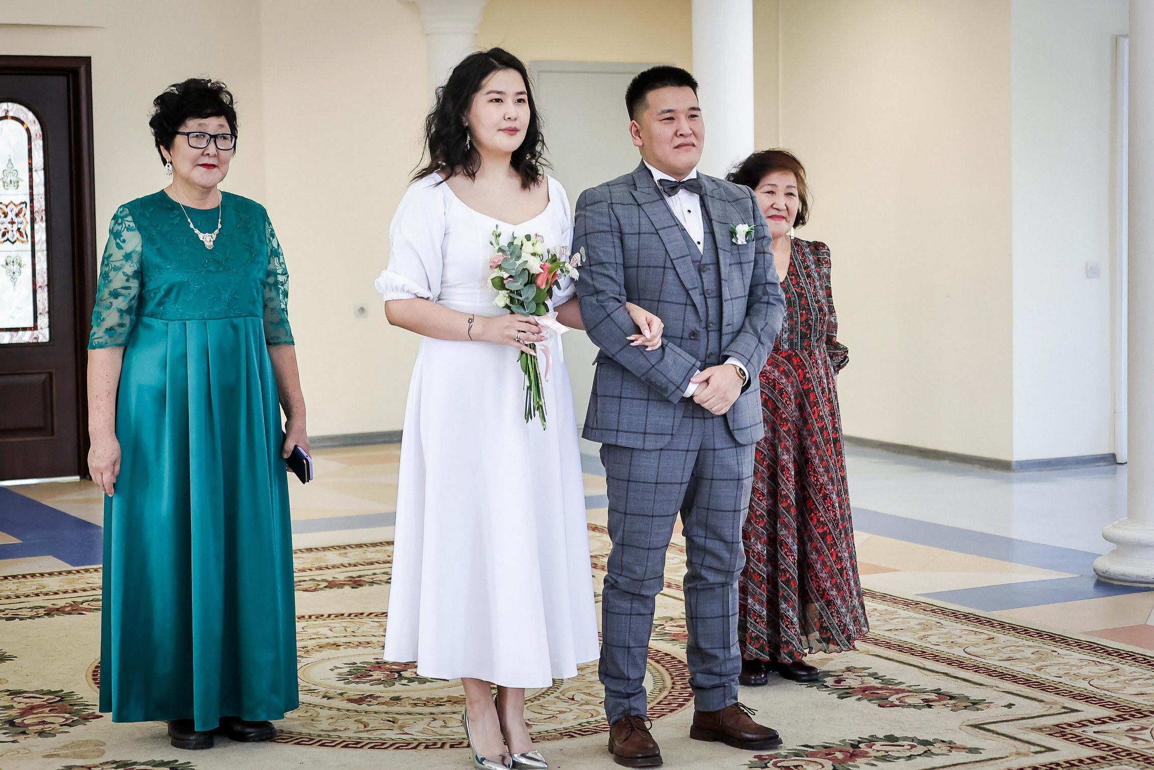 «Подобная сегодняшней дата бывает не часто. Мы планировали расписаться в этот день уже давно, три месяца назад. В магию чисел верим 50 на 50», — говорят будущая семья Гуриновых Мичил и Туяра.