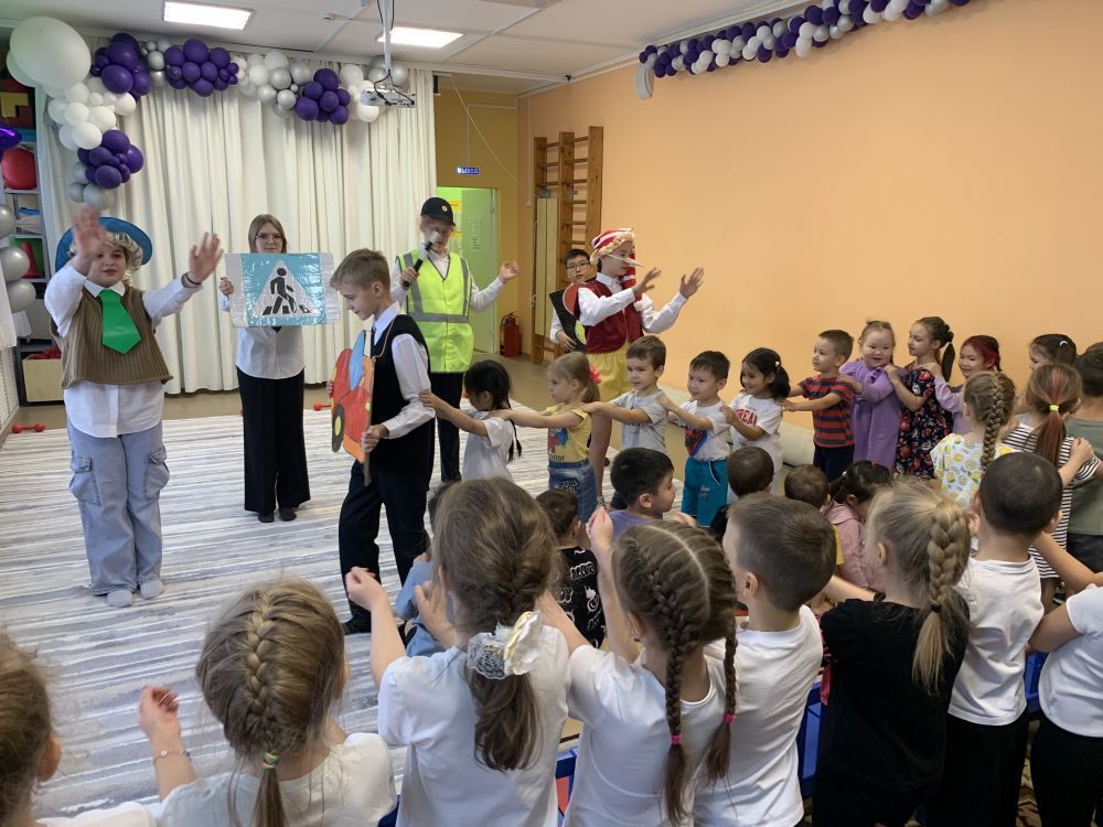 Незнайка, Буратино и «инспектор ГИБДД» показали детям опасные ситуации, которые могут возникнуть в ходе участия в дорожном движении для тех, кто не знает ПДД.