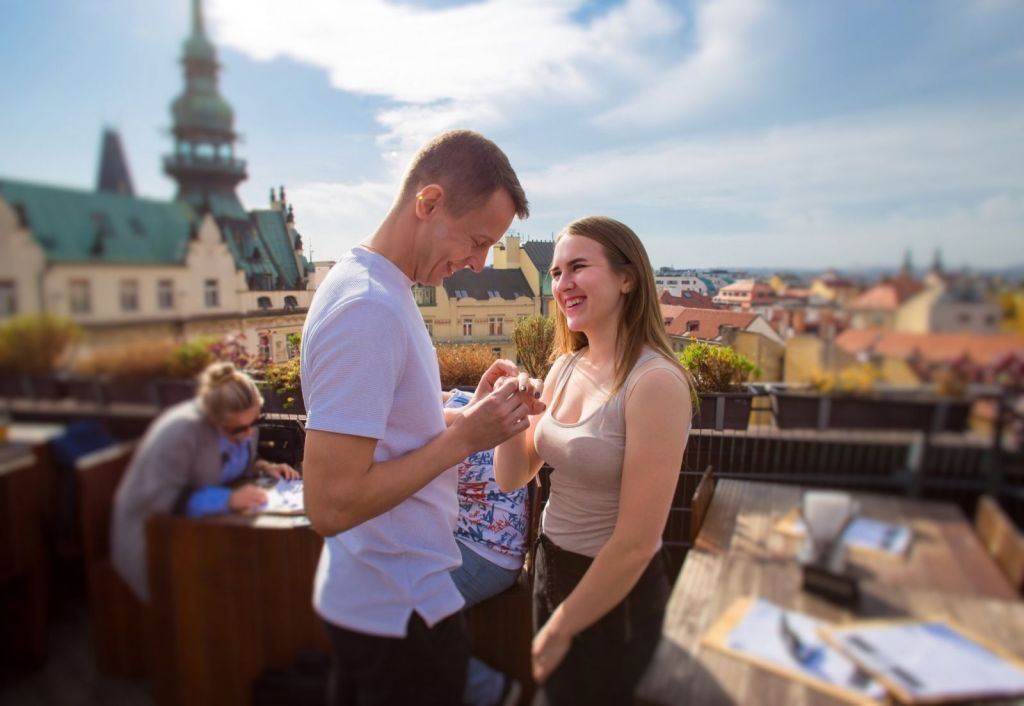 На следующий день после соревнований гостеприимные хозяева повезли всех участников на Эльбрус. Наши герои выяснили, что оба не катаются ни на лыжах, ни на сноуборде. Тогда Максим предложил избраннице составить ему компанию и подняться на подъемнике погулять у вершины Эльбруса.