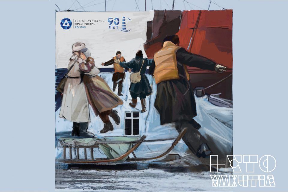 Я учитывал ТЗ, расположение места и архитектуру здания, наследие советской монументалки в посёлке, а также причастность «Росатома» к жизни в арктических зонах. Одна из основных обязанностей «Росатома» в Арктике — это обеспечение навигации судов, строительство и поддержание портовой инфраструктуры. Моя работа напрямую повествует о деятельности компании, при этом показывает важный для каждого жителя Тикси момент, это история про людей», — поделился художник.