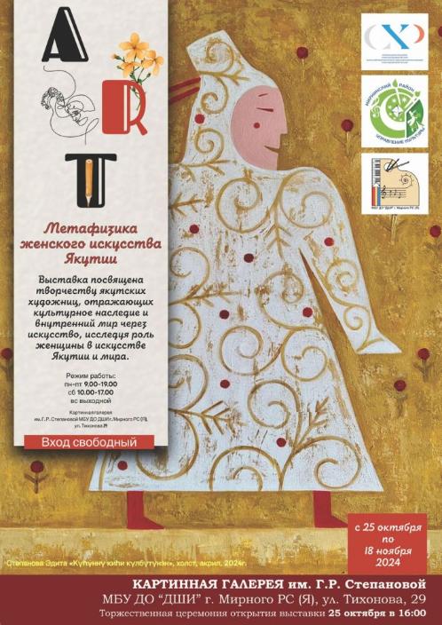 25 октября в 16.00 в картинной галерее им. Г. Р. Степановой состоится торжественное открытие республиканской передвижной выставки «Метафизика женского искусства Якутии». Это яркая, концептуальная выставка от Союза художников Якутии, которая позволит нам увидеть произведения женщин из ведущего коллектива художников на Дальнем Востоке.
