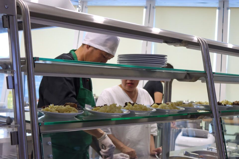 В период проведения международных интеллектуальных игр работают две столовые – в жилом корпусе и учебно-лабораторном. Ежедневно на работу выходят восемь поваров, восемь посудниц, две уборщицы и один рабочий. До завершения Якутской исследовательской школы в двух корпусах кормили до 300 человек, сейчас – 180.