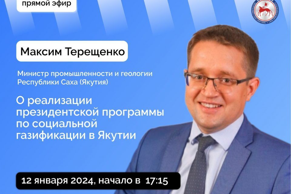 Максим Терещенко расскажет о реализации президентской программы по социальной газификации в Якутии, а также ответит на вопросы, связанные с газификацией домовладений и поддержкой нефтегазовой отрасли.