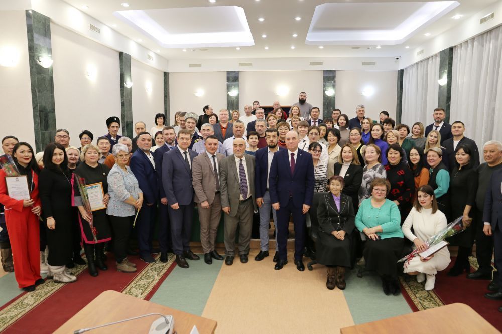 Глава района вручил почетные грамоты Министерства по внешним связям и делам народов РС(Я) Андрею Бочарникову, Ильтану Никифорову, Аюне Цыбеновой, благодарственные письма – Ирине Мазуровой, Ирине Медияйнен, Кристине Кашириной, Анне Васильевой, Арзу Джумаевой, Сауле Нурсеитовой, Алие Сафиуллиной.