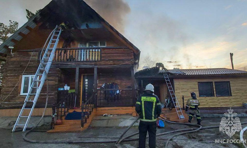 Сообщение о пожаре в частном доме на улице Молодежной в селе Амга поступило в 09:16. На момент прибытия пожарных из кровли дома был виден открытый огонь.